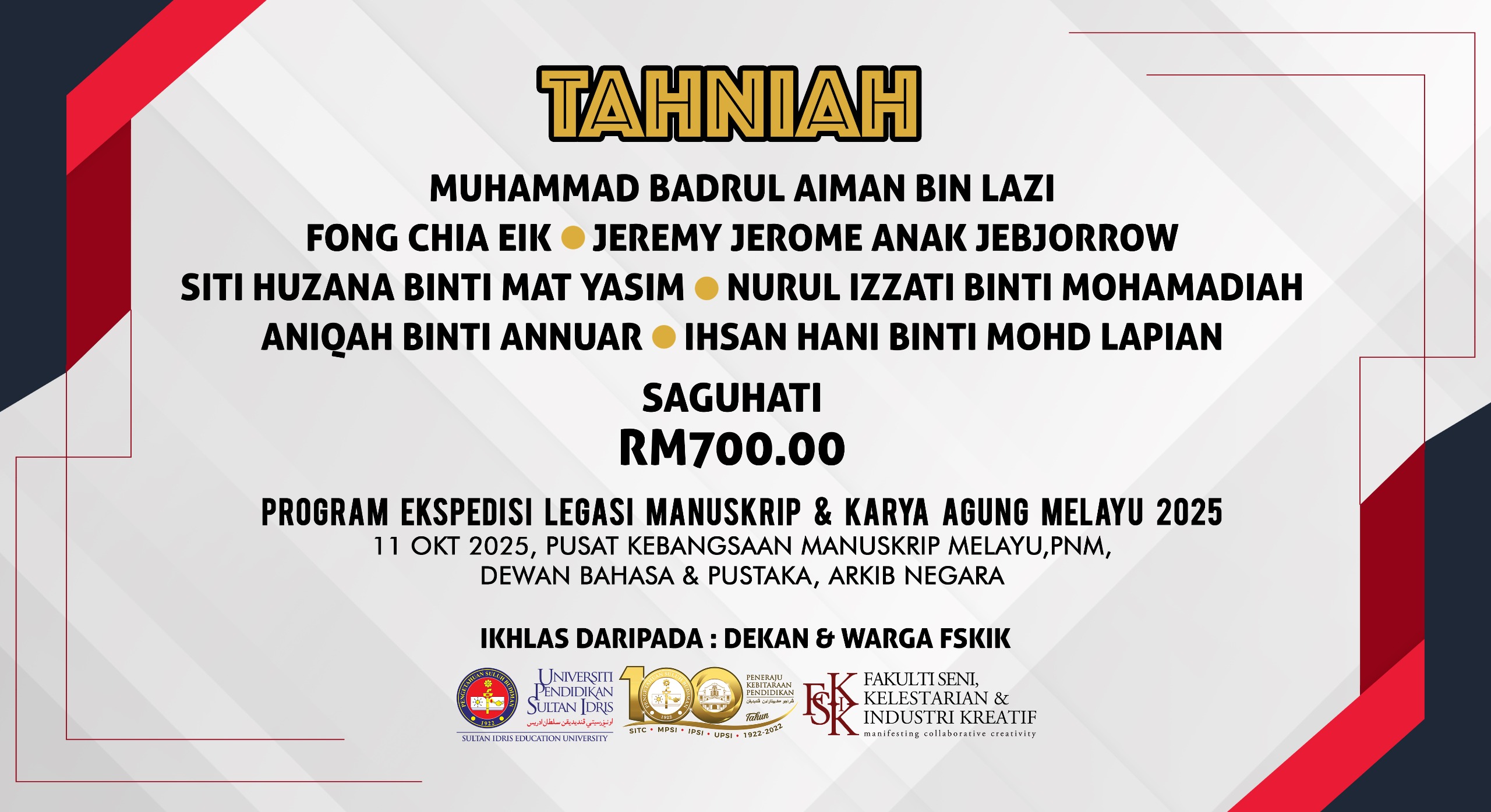 TINGKAT 3, BANGUNAN E-LEARNING, UNIVERSITI PENDIDIKAN SULTAN IDRIS, 35900 TANJONG MALIM, PERAK